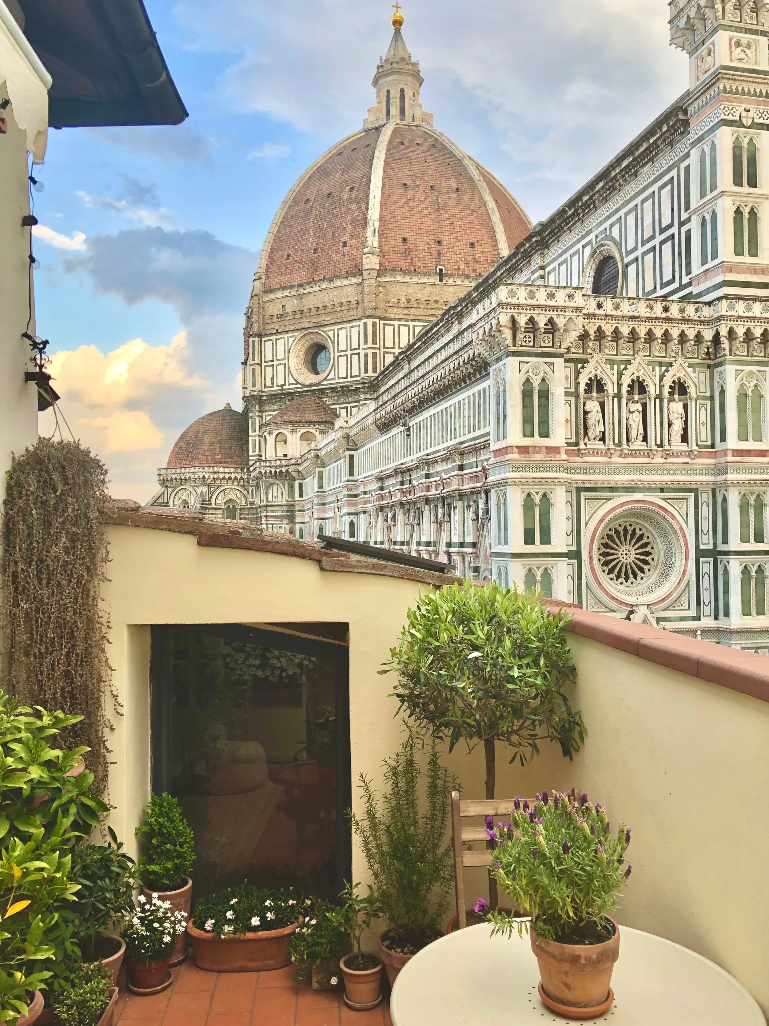 South Wing: This beauty features two double bedrooms facing the Duomo, one bathroom, and one living room plus a kitchenette facing the baptistery. The most unique feature: a GORGEOUS private balcony connecting the master bedroom with the living room.